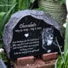 A natural sloped, boulder-style granite pet memorial that blends beautifully into any garden setting.